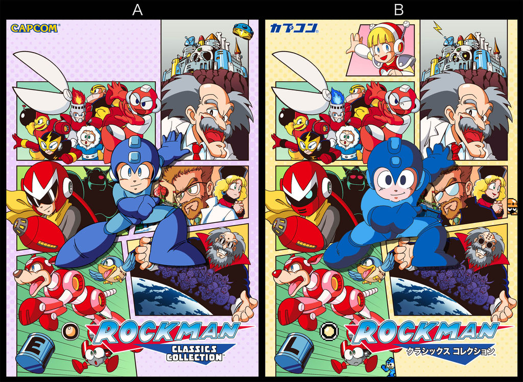 とりあえずロックマンがいるのと、赤い眼鏡かけたやつの顔が違うと、楽しそうに笑っているおじいさんの眼鏡が違うのだけはわかりました。